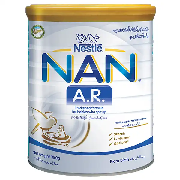 Thickened with starch, NAN A.R. has been specifically designed for formula fed babies 0-12 months of age with regurgitation.The balance between the macronutrients of NAN A.R. contributes to the prevention of obesity when compared to the home-thickened formula. Reduces esophageal exposure to acidic contents.